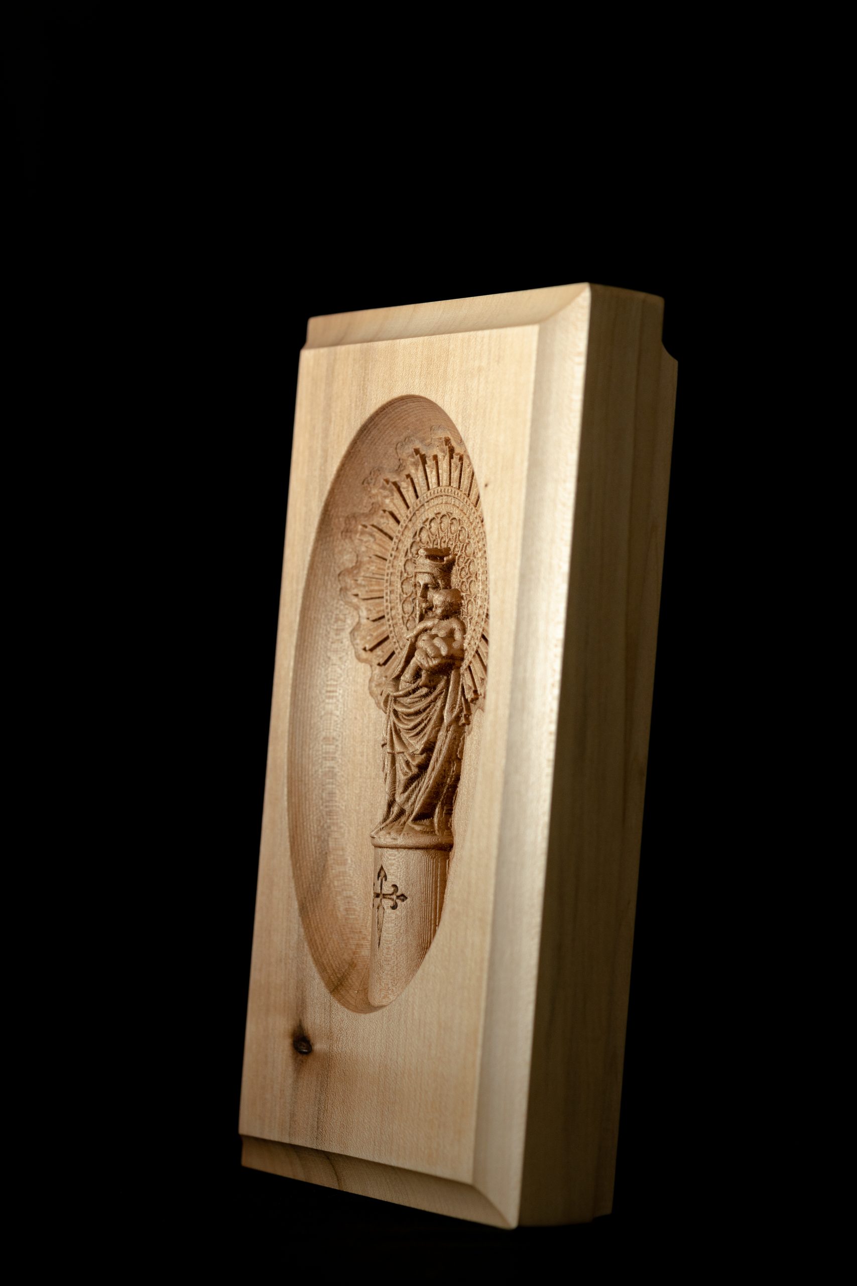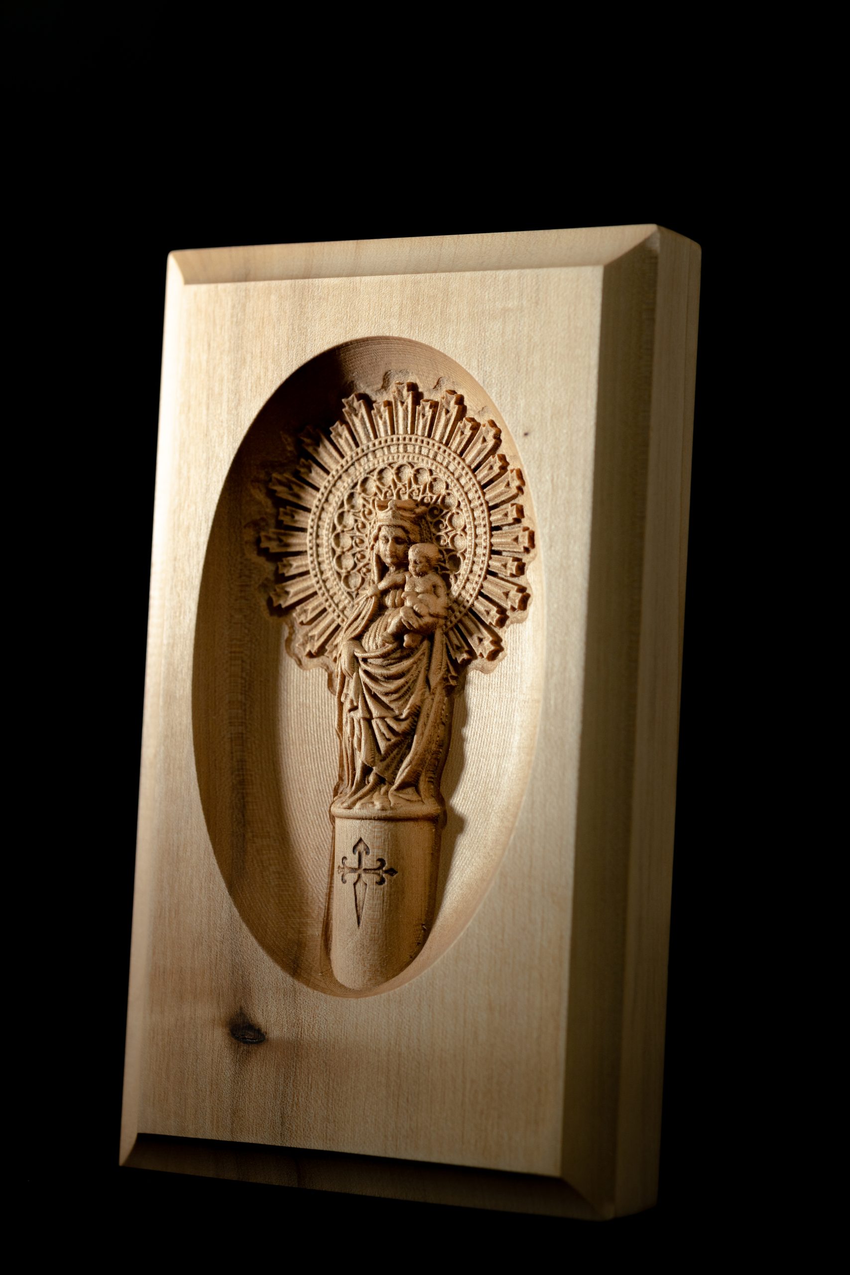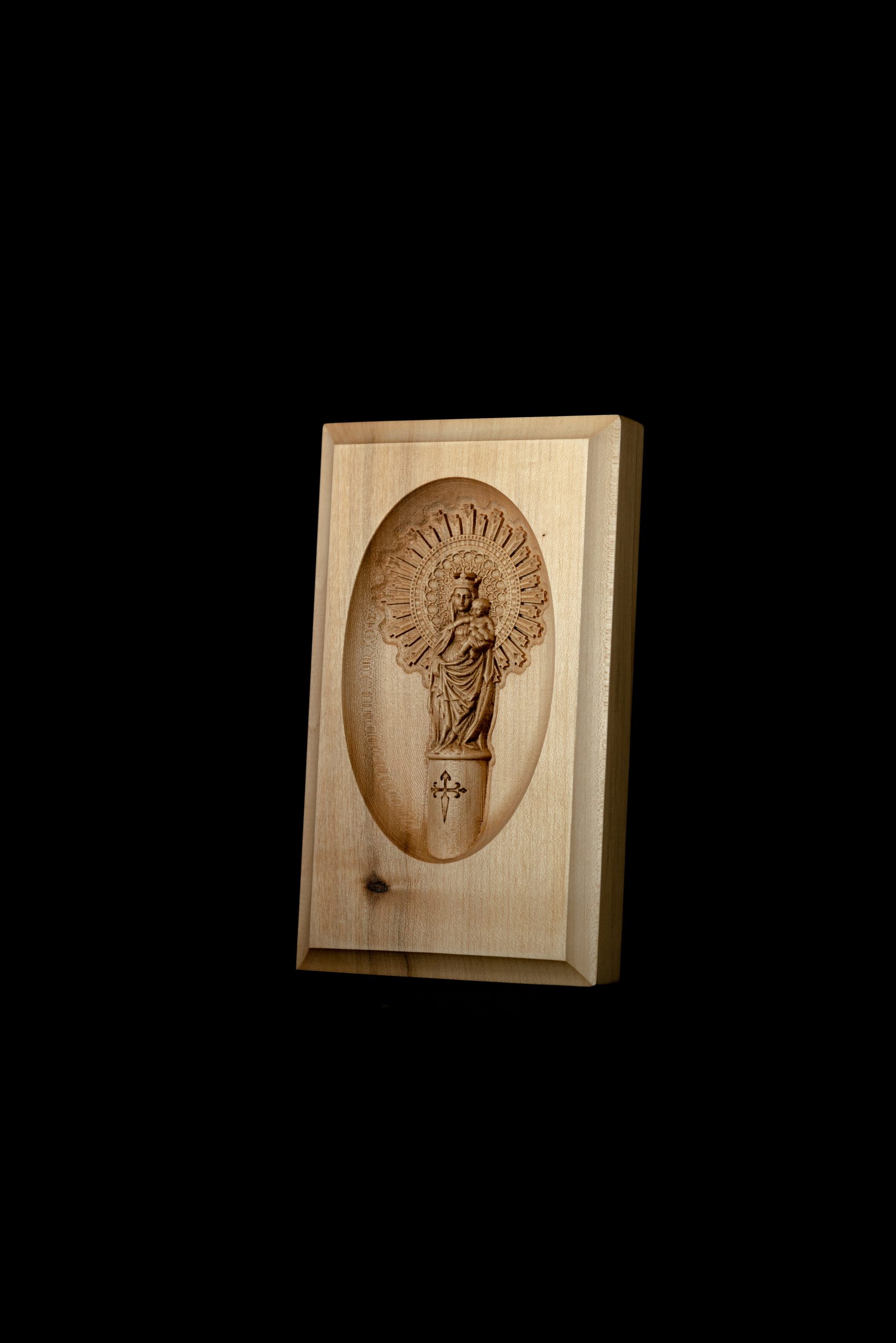 - Técnica: Realizada a medio relieve, combinando la precisión de nuestros sistemas CNC con nuestra larguísima experiencia en el mundo del arte en madera; con lo que conseguimos destacar los detalles más finos, la profundidad más realista y la belleza más natural que caracteriza a las autenticas piezas de arte como esta.
